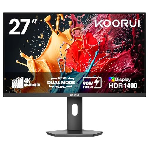 The KOORUI 27″ 4K QD-Mini LED Gaming Monitor is ideal for serious gamers, creative professionals, and tech enthusiasts who demand top-tier performance and vibrant visuals. If you seek a monitor that offers ultra-fast refresh rates combined with exceptional color accuracy and HDR capabilities, this model is designed for you. Its dual-mode functionality caters both to competitive gaming at high frame rates and detailed creative work requiring precise color representation.