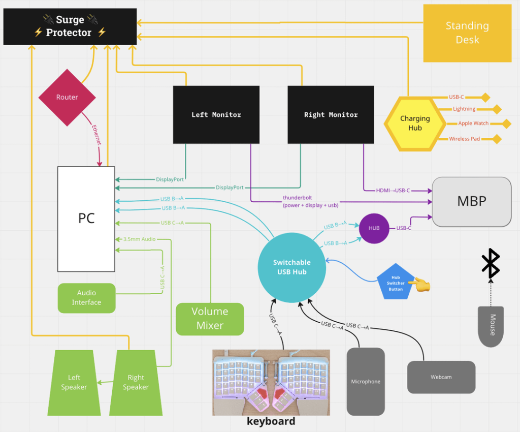 Use color-coded cablesto quickly identify which cable belongs to which device. This helps when unplugging or troubleshooting. It also keeps cables organized and easy to manage.