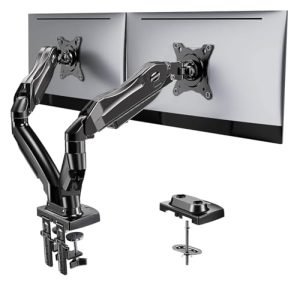 Additionally, the mount’s compatibility with standard VESA 75/100mm patterns ensures broad support for most monitors, while its sturdy construction ensures stability and durability. The black finish adds a professional aesthetic to any desk environment. By freeing up valuable desk space, this triple monitor mount helps create a cleaner and more organized workspace, which can contribute to improved focus and efficiency throughout the day.