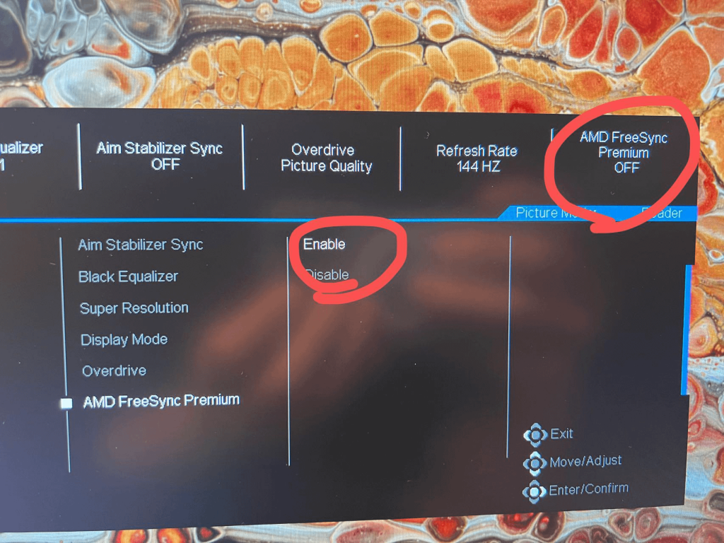 Make sure to enableFreeSync by selecting it and confirming your choice. This helps reduce screen tearing and stuttering.